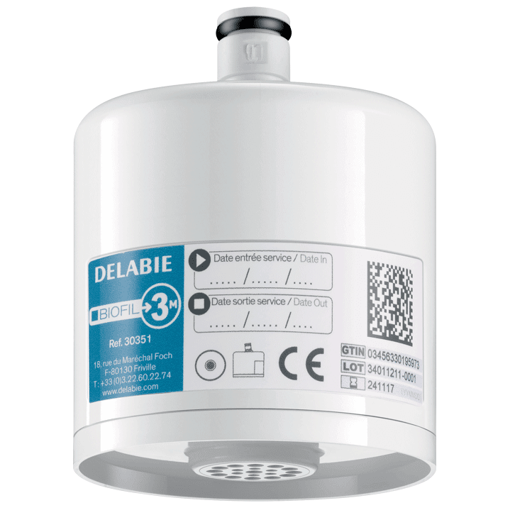 BIOFIL anti-Legionella un visu baktēriju krāna un sienas dušas filtrs, laminārā plūsma. Ierīce izgatavota no ABS. Membrānas tips: cauruļveida mikrofiltrācija. Membrāna izgatavota no polietilēna. Poru nogriešanas slieksnis: 0,1 μm nominālā un 0, 2 μm absolūtā sterilizācijas pakāpe. Kvalificēts ūdens tilpums lietošanas laikā: 9000 litri. Filtrēšanas plūsmas ātrums: 4,6 l/min pie 1 bar, 7,6 l/min pie 3 bar un 9,4 l/min pie 5 bar (tikai filtrs, izslēdz nekādus plūsmas ātruma ierobežojumus krānā). Vietu taupošs, piemērots krāniem ar zemu iztekas augstumu: H. 50mm, Ø 56mm. Kontrolēta retropiesārņojuma pārvaldība: aizsargapvalks un leņķiskais savienotājs optimālai pozicionēšanai (filtra stāvokli var regulēt tā, lai ūdens neplūst tieši uz netīrumiem). Maksimālais augšējais spiediens lietošanas vietā: 5 bāri. Maksimālais kalpošanas laiks: 3 mēneši pēc uzstādīšanas. Izturība pret termiskiem triecieniem: 70°C 30 minūtes. Izturība pret ķīmiskiem triecieniem: aktīvā hlora līmenis līdz 100 ppm 3 stundas (kumulatīvi kopā). Nesterils filtrs. CE I klases medicīnas ierīce. Iepakots atsevišķi. Jāpasūta daudzumos pa 10. Iepakots kastēs pa 10 vienībām.