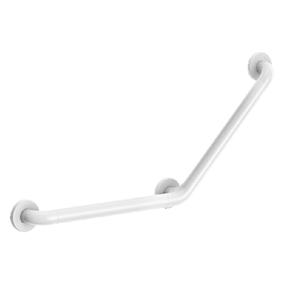 Leņķiskais satvērējstienis 135°, Ø 32mm, cilvēkiem ar kustību traucējumiem. Leņķveida satvērējs izgatavots no spilgti balta HR neilona. Izmantošanai kā margas (horizontālā daļa) vai kā satvērēju (135° daļa) tualetēm, dušām vai vannām. NylonClean antibakteriāla apstrāde: optimāla aizsardzība pret baktēriju un pelējuma attīstību. Universāls gan kreisajai, gan labajai pusei. Piemērots intensīvai lietošanai sabiedriskās vietās vai veselības aprūpes sektorā. Augstas izturības poliamīds (neilons): ar 2 mm pastiprinātu tērauda serdi, kas apstrādāta pret koroziju. Vienmērīga neporaina virsma ērtai apkopei un higiēnai. Laba izturība pret ķīmiskiem produktiem un tīrīšanu. Anti-UV apstrāde: novērš dzeltenumu. Silts uz tausti. 38 mm atstarpe starp stieni un sienu: minimāla vieta neļauj apakšdelmam iziet starp stieni un sienu, samazinot lūzumu risku līdzsvara zuduma gadījumā. 3 fiksācijas punkti novērš plaukstas iesprūšanu plaukstas locītavā un vienkāršo uzstādīšanu. Slēptie stiprinājumi, piestiprināti pie sienas ar 6 caurumu plāksni, Ø 73mm. Komplektā ar nerūsējošā tērauda skrūvēm betona sienām. Izmēri: 400 x 400 mm. Pārbaudīts uz svaru virs 200 kg. Maksimālais ieteicamais lietotāja svars: 135 kg. 10 gadu garantija. CE marķējums.