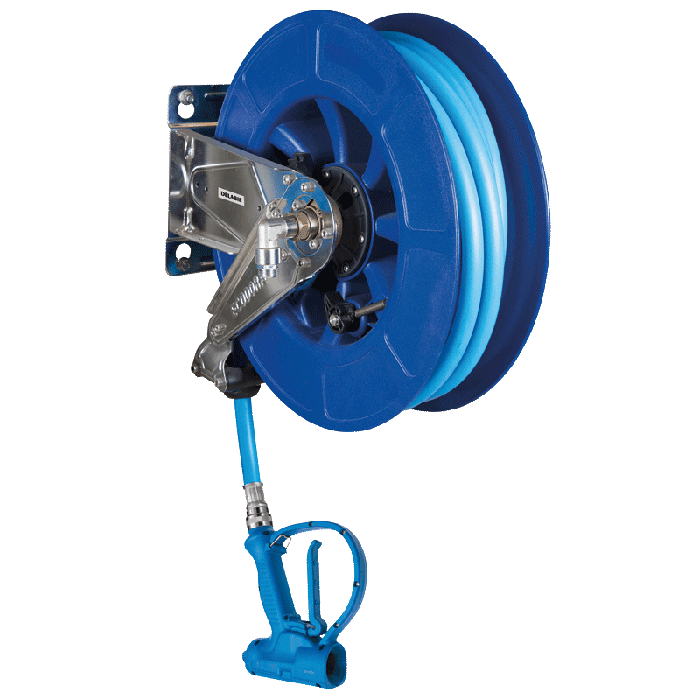 Automātiski satinama šļūtenes spole ar elastīgu šļūteni L. 15m un vadības rullīšiem: Maksimālā temperatūra 70°C. Plūsmas ātrums 23 lpm pie 3 bāriem. Maksimālais spiediens 20 bāri, 12 bāri ar rokas aerosolu. Šļūtenes spole ar ABS cilindru Ø 425mm. 304 Nerūsējošā tērauda kronšteins. Pasūtiet atsevišķi: leņķiskais krāns ar integrētu vakuuma slēdzi, lai novērstu piesārņotā ūdens atpakaļplūsmu elektrotīklā. Šļūtenes spole ar 30 gadu garantiju.