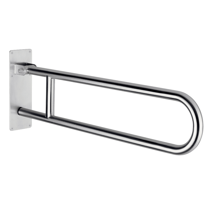 Pamata līmeņa nolaižamā atbalsta sliede Ø 32 mm, cilvēkiem ar kustību traucējumiem. Nolaižams satvērējs no pulēta satīna 304 nerūsējošā tērauda tualetēm un dušām. Redzami stiprinājumi, kas piestiprināti pie sienas ar 6 caurumu nerūsējošā tērauda plāksni. Sienas plāksnes biezums: 3,5 mm. Izmēri: 850x300x100mm. 30 gadu garantija. CE marķējums.