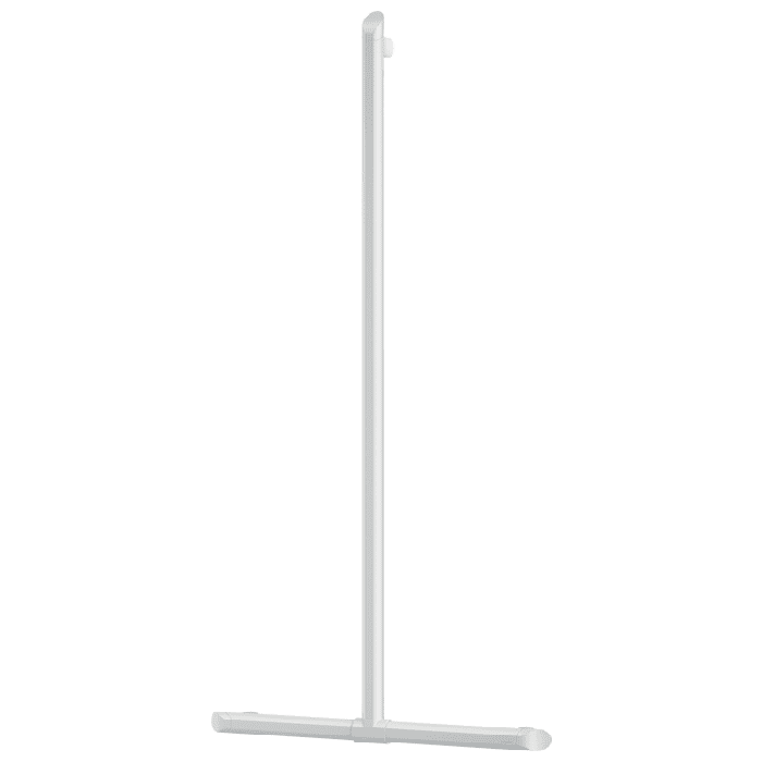 Be-line® T veida satvērējs Ø 35 mm dušām ar bīdāmu vertikālu sliedi. Izmantojiet kā dušas sliedi un lai atbalstītu lietotāju vertikālā stāvoklī. Palīdz un nodrošina ieeju un pārvietošanos dušā cilvēkiem ar kustību traucējumiem. Izmantojiet kā dušas sliedi, pievienojot dušas galvas turētāju un/vai ziepju trauku. Uzstādīšanas laikā var regulēt vertikālo stāvokli: var pārvietot pa kreisi vai pa labi, lai pielāgotu telpu (dušas novietojums, dušas sēdekļa dziļums...). Alumīnija caurules biezums 3mm. Cietie alumīnija stiprinājuma punkti. Noapaļots profils Ø 35 mm ar ergonomisku plakanu priekšējo virsmu, kas novērš rotāciju, lai nodrošinātu optimālu satvērienu. Matēts balts alumīnijs ar pulvera pārklājumu nodrošina labu vizuālo kontrastu ar tumšām sienām. Viendabīga virsma ērtai apkopei un higiēnai. 38 mm atstarpe starp stieni un sienu: minimāla vieta neļauj apakšdelmam iziet starp stieni un sienu, samazinot lūzumu risku līdzsvara zuduma gadījumā. Slēptie stiprinājumi. Komplektā ar Ø 8 x 70 mm nerūsējošā tērauda skrūvēm betona sienām. Izmēri: 1 130 x 500 mm. Pārbaudīts uz svaru virs 200 kg. Maksimālais ieteicamais lietotāja svars: 135 kg. 10 gadu garantija. CE marķējums.