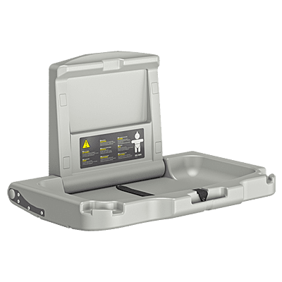 Pie sienas stiprināms pārtinamais galds. Ar regulējamu siksnu lieliski pielāgojas tikko aprūpētā mazuļa formai. Zīdaiņiem līdz 11 kg vai 12 mēnešiem. Augsta blīvuma polietilēns (HDPE). Vietas taupīšana: saglabāta vertikālā stāvoklī. Palēnināta nolaišanās. Viegli kopjams: virsmu ir viegli tīrīt. Atbilst Eiropas standartam EN 12221. Izmēri: atvērtā stāvoklī 855 x 585 x 495 mm, aizvērtā stāvoklī 855 x 585 x 107 mm. Pārtinamo galda svars: 11,5 kg. Pie sienas stiprināms pārtinamais galds ar 30 gadu garantiju.
