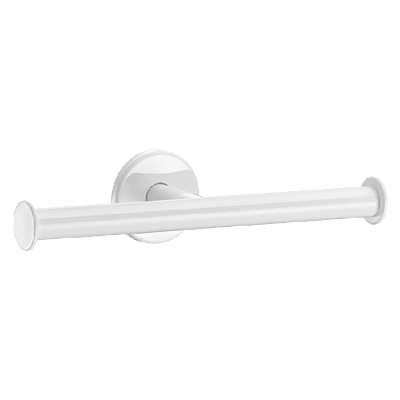 Pie sienas stiprināms tualetes ruļļa turētājs. Dubults tualetes ruļļa turētājs. Caurules Ø 20mm, biezums 1mm. Bakteriostatisks balts pulverkrāsots 304 nerūsējošais tērauds. Slēptie stiprinājumi. 10 gadu garantija.