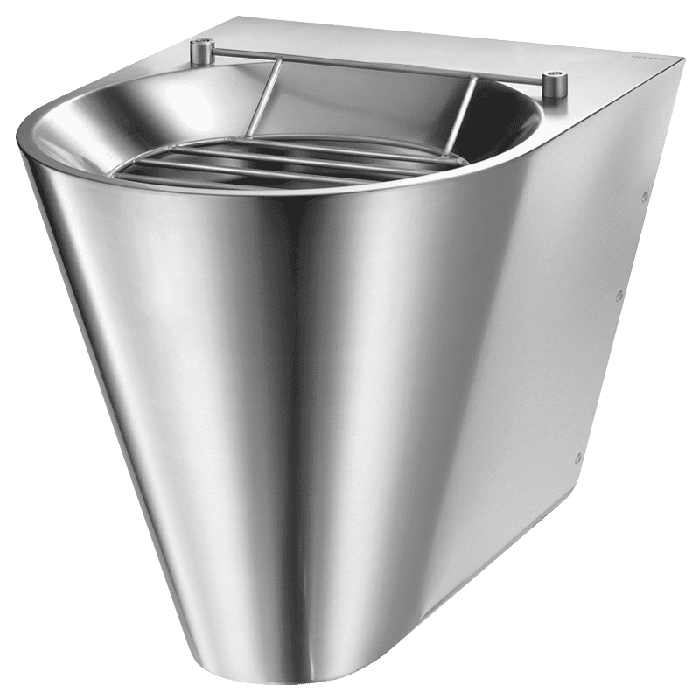 Uz grīdas stāvoša atkritumu izlietne. Bakteriostatiskais 304 nerūsējošais tērauds. Nerūsējošā tērauda biezums: 1,5 mm. Pulēta satīna apdare. Gluda virsma ir viegli tīrāma. Slēpta perimetrālā skalošanas sistēma. Horizontālā vai vertikālā ūdens ieplūde: Ø 55mm. Horizontālā vai vertikālā ūdens izvade: Ø 100mm. Apgādāts ar PVC cauruli. Slēpta kanalizācija: apvalkota izlietne. Ātri un vienkārši uzstādāms: 2 piekļuves paneļi ar TORX drošības skrūvēm pret zādzību. Šarnīru nerūsējošā tērauda kausu režģis. Svars: 16kg. 30 gadu garantija.