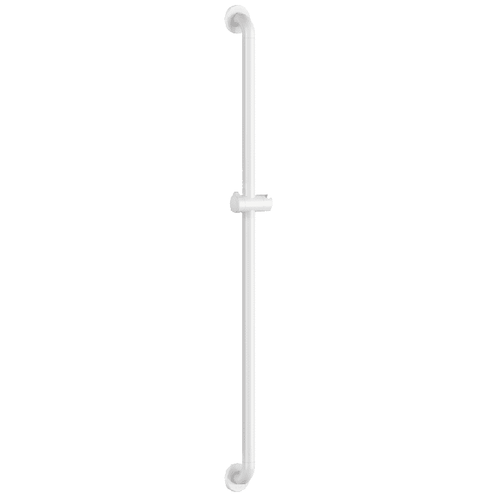 Dušas pacelšanas sliede Ø 32mm ar dušas galvas turētāju cilvēkiem ar kustību traucējumiem. Var izmantot kā vertikālu satvērēju un dušas galvas sliedi. Neilona HR dušas galvas turētājs ar ergonomisku bloķēšanas gredzenu. Iespējams pievienot ziepju trauka turētāju (pasūtīt atsevišķi). NylonClean antibakteriāls neilons: optimāla aizsardzība pret baktēriju attīstību. Piemērots intensīvai lietošanai sabiedriskās vietās vai veselības aprūpes sektorā. Augstas izturības poliamīds (neilons) un polimērs: ar 2 mm pastiprinātu tērauda serdi, kas apstrādāta pret koroziju. Vienmērīga neporaina virsma ērtai apkopei un higiēnai. Laba izturība pret ķīmiskiem produktiem un tīrīšanu. Anti-UV apstrāde. Silts uz tausti. 38 mm atstarpe starp stieni un sienu: minimāla vieta neļauj apakšdelmam iziet starp stieni un sienu, samazinot lūzumu risku līdzsvara zuduma gadījumā. Slēptie stiprinājumi, piestiprināti pie sienas ar 6 caurumu plāksni, Ø 73mm. Komplektā ar nerūsējošā tērauda skrūvēm betona sienām. Augstums: 1150 mm. Pārbaudīts uz svaru virs 200 kg. Maksimālais ieteicamais lietotāja svars: 135 kg. 10 gadu garantija. CE marķējums.