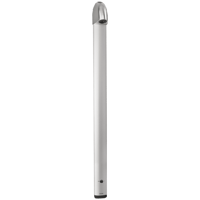 Elektroniskais dušas panelis: Anodēts alumīnijs un hromēts satīna apdares panelis. Regulējams savienotājs augšējai vai aizmugurējai ieplūdei. Slaida struktūra ar slēptiem stiprinājumiem. Darbojas ar baterijām ar CR123 6V litija baterijām. Infrasarkanā klātbūtnes noteikšana. Duša sākas, kad roka tiek virzīta uz sensoru (noteikšanas attālums ~4cm). Izslēdzas brīvprātīgi vai automātiski pēc ~60 sekundēm. Duty flush (~60 sekundes ik pēc 24 stundām pēc pēdējās lietošanas reizes). Plūsmas ātrums 6 lpm pie 3 bāriem. Fiksēta dušas galva ar automātisku plūsmas ātruma regulēšanu, izturīga pret kaļķakmeni. Pieejams filtrs. Integrēts noslēgkrāns. M½" pieslēgums jaukta ūdens apgādei. Piemērots cilvēkiem ar kustību traucējumiem. 10 gadu garantija.