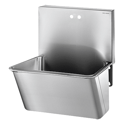 Delabie Surgical scrub up trough with high splashback (two holes)