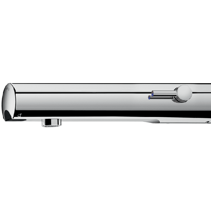 Pie sienas uzstādāms elektroniskais izlietnes maisītājs: 230/6V padziļināta strāvas padeve. Samazinātas stagnācijas solenoīda vārsts un elektroniskais bloks, kas integrēts maisītāja korpusā. Plūsmas ātrums iepriekš iestatīts uz 3 lpm pie 3 bāriem, var regulēt no 1,4 līdz 6 lpm. No kaļķakmens izturīgs plūsmas taisnotājs. Duty flush (~60 sekundes ik pēc 24 stundām pēc pēdējās lietošanas). Aktīva infrasarkanā klātbūtnes noteikšana, sensors iztekas galā optimizē noteikšanu. Hromēts nerūsējošā tērauda korpuss L. 190mm. Vāciņš fiksēts ar 2 slēptām skrūvēm. F3/8" noslēdzošie krāni. Uzstādīšanai pie sienas šķērssienas. Pretbloķēšanas drošība. Sānu temperatūras kontrole ar regulējamu maksimālās temperatūras ierobežotāju. Piemērots cilvēkiem ar kustību traucējumiem. 30 gadu garantija.