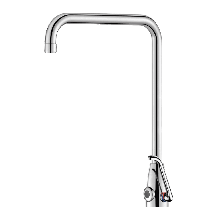 Uz klāja uzstādīts elektroniskais izlietnes maisītājs: Neatkarīgs IP65 elektroniskais vadības bloks. 230/12V tīkla padeve ar transformatoru. Plūsmas ātrums iepriekš iestatīts uz 4 lpm pie 3 bāriem, var regulēt no 1,4 līdz 6 lpm. No kaļķakmens izturīgs plūsmas taisnotājs. Regulējama skalošana (iepriekš iestatīta skalošana ~ 60 sekundes ik pēc 24 stundām pēc pēdējās lietošanas). Triecienizturīgs infrasarkanā klātbūtnes noteikšanas sensors. Hromēts cieta misiņa korpuss ar stiprinājumu, kas pastiprināts ar 2 nerūsējošā tērauda stieņiem. PEX elastīgie elementi ar filtriem un solenoīda vārstiem M⅜". 360° grozāms snīpis ar gludu iekšpusi (samazina baktēriju attīstību). Noņemams snīpis tīrīšanai. Pretbloķēšanas drošība. Sānu temperatūras kontrole ar ergonomisku garu sviru un regulējamu maksimālās temperatūras ierobežotāju. Solenoīda vārsti pirms sajaukšanas kameras. Piemērots cilvēkiem ar kustību traucējumiem. 30 gadu garantija. Divas izslēgšanas iespējas 230/12V modeļiem: Standarta režīms: noteikta plūsma ar automātisku izslēgšanos. IESLĒGTS/IZSLĒGTS režīms: lietotājs brīvprātīgi izslēdz plūsmu vai automātiski izslēdzas pēc 30 minūšu plūsmas. Iespējami termiski triecieni.