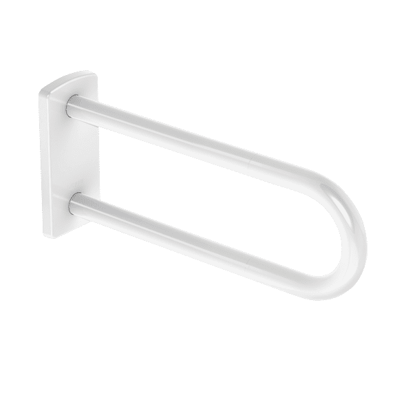 Sienas atbalsta sliede cilvēkiem ar samazinātu materiālu. Spilgti balts HR neilons. Var izmantot kā satvērēju un fiksētu atbalsta stieni tualetēm, dušām vai izlietnēm. Parasti uzstāda paralēli nolaižamajam atbalsta stienim tualetē vai abās izlietnes pusēs. Ieteicams, ja tualetes pods vai dušas sēdeklis atrodas tālu no sānu sienas. Antibakteriālā NylonClean apstrāde: optimāla aizsardzība pret baktēriju attīstību. Piemērots intensīvai lietošanai sabiedriskās vietās vai veselības aprūpes sektorā. Augstas izturības poliamīds (neilons) un polimērs: ar 2 mm pastiprinātu tērauda serdi, kas apstrādāta pret koroziju. Vienmērīga neporaina virsma ērtai apkopei un higiēnai. Laba izturība pret ķīmiskiem produktiem un tīrīšanu. Anti-UV apstrāde. Silts uz tausti. Fiksēts ar 304 nerūsējošā tērauda plāksni, 4 mm bieza. Komplektā ar nerūsējošā tērauda skrūvēm betona sienām. Izmēri: 650 x 230 x 105mm, Ø 32mm. Pārbaudīts uz svaru virs 200 kg. Maksimālais ieteicamais lietotāja svars 135 kg. 10 gadu garantija. CE marķējums.